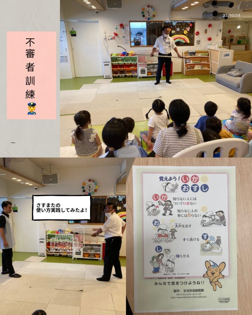 先日は小松川警察署の方々にお越しいただき『不審者対策訓練』を実施しました!